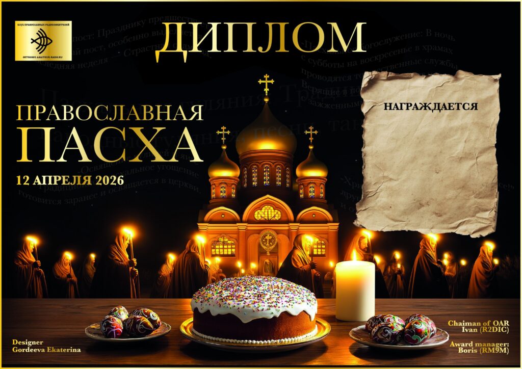 Клуб Православных радиолюбителей (OAR) с 00.00 (МСК) 01 апреля до 23.59 (МСК) 12 апреля 2026 года проводит дни активности, посвященные Православной Пасхе.